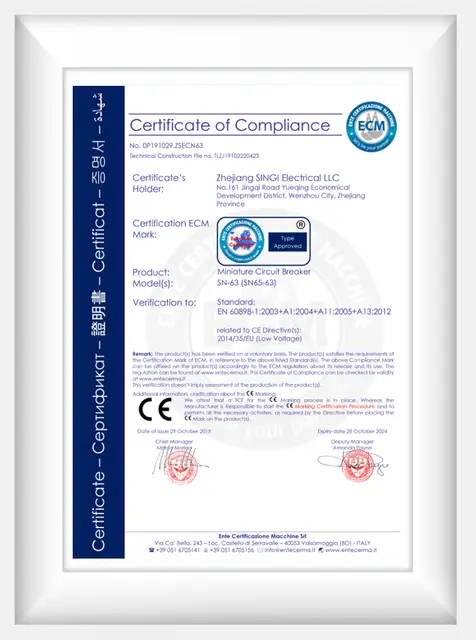 Singi Electrica là nhà sản xuất và nhà cung cấp Trung Quốc chủ yếu sản xuất bộ قطع mạch thu nhỏ, MCCB, SPD, hộp phân phối, hộp nối với 24 năm kinh nghiệm. Hy vọng xây dựng mối quan hệ kinh doanh với bạn.